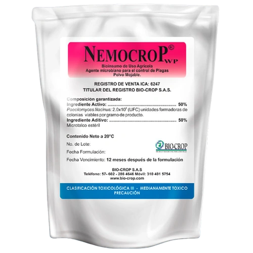 Nemocrop WP ofrece una solución biológica para el control de nemátodos fitoparásitos, incluyendo géneros como Meloidogyne, Heterodera, Helicotylenchus, Pratylenchus y Radopholus. Su ingrediente activo, Paecilomyces lilacinus, es un hongo que parasita a los nemátodos en sus diferentes estadios (huevos, juveniles y adultos).